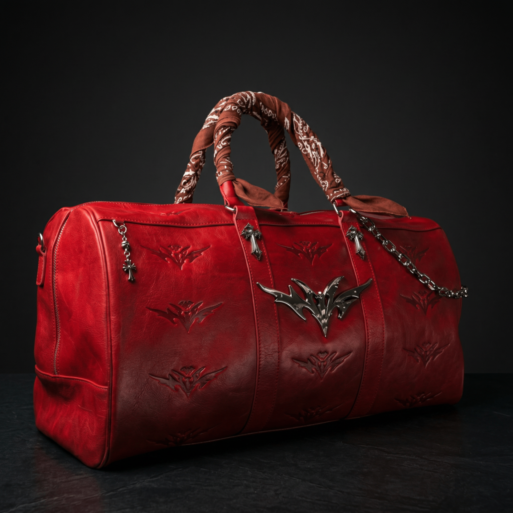 Handcrafted darkness. Gothic silver hardware. Cross charms and chain links. This is not a bag — it's a statement of rebirth.